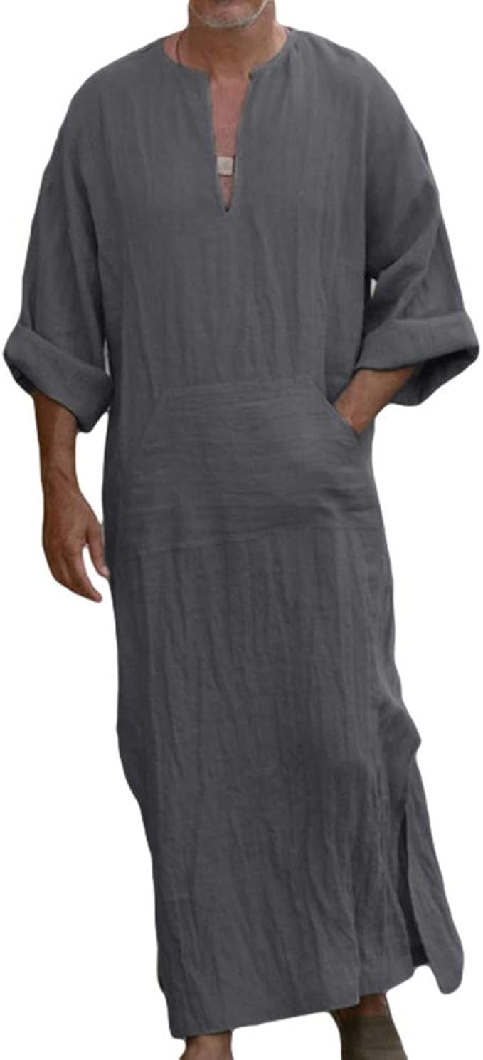 Hibote Ethnische Roben Manner Lange Armel Einfarbig Kleider Kostum Mit Taschen Herren Weinlese Losen Fit Beilaufiges Kaftan Kleid Lange Tunika Grosse Grossen Zwei Arten Amazon De Bekleidung