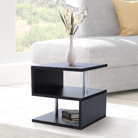 Table D Appoint En Bois En Forme De S A 3 Niveaux Etageres De Rangement Organisateur Salon Table D Appoint Bureau Noir Walmart Canada