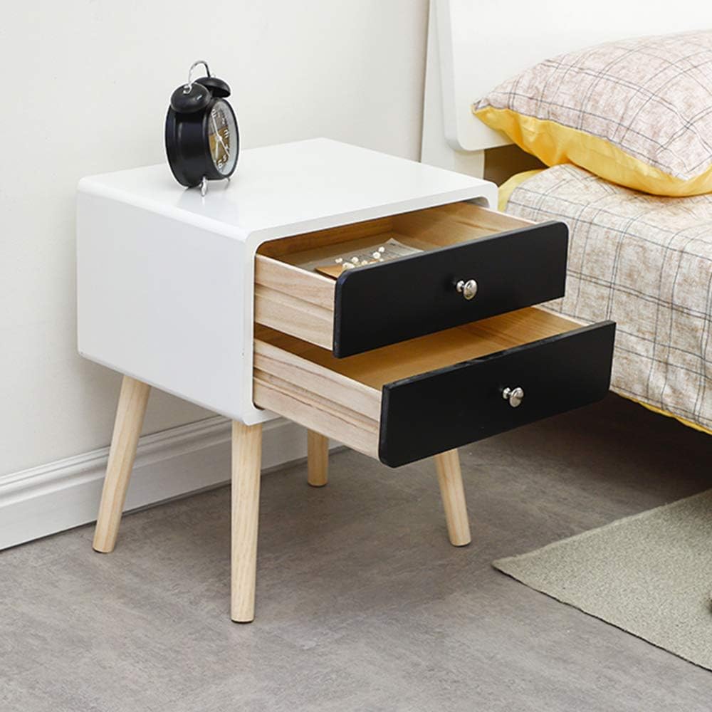 Pour Salon Couloir Chambre Bureau Table Basse En Bois Table D Appoint Avec Pieds En Bois Massif Blanc Noir Yjiijy Table De Chevet Avec 2 Tiroirs 42 X 32 X 50cm Tables