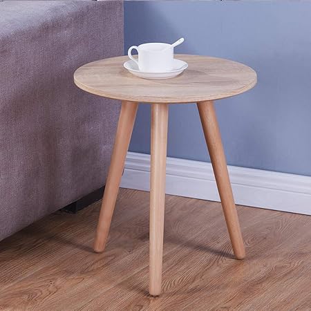 Goldfan Table D Appoint En Ronde Petite Table Basse En Bois De Pieds En Bois Table D Appoint Bout De Canape Pour Salon Brun Clair Amazon Fr Cuisine Maison