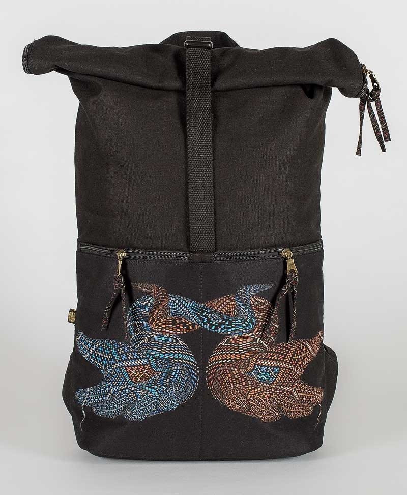 Psytrance Clothing Travel Backpack Laptop Bag Roll Top Black Canvas Backpack
