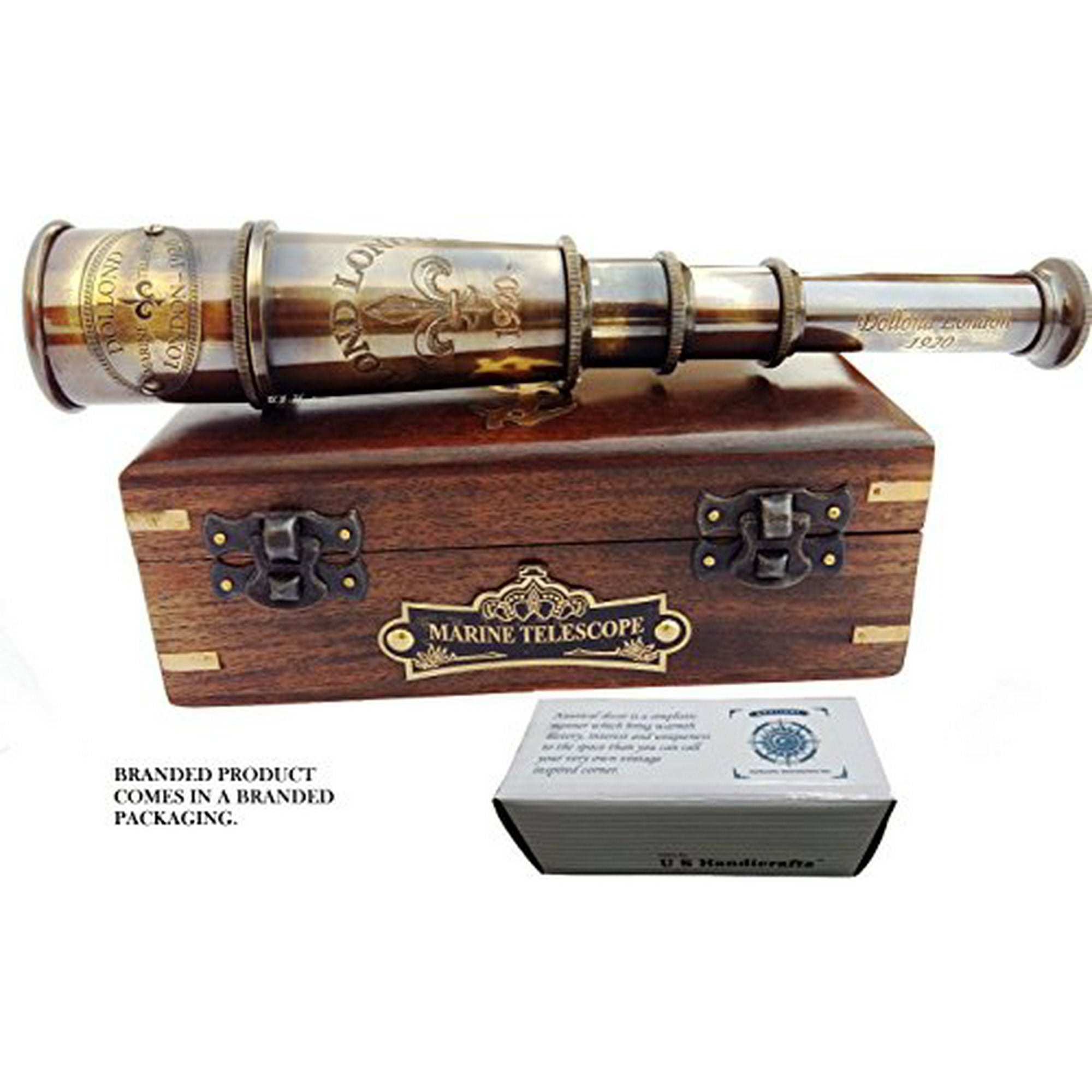 DOLLOND London 1920 Marine Collectible Décor Nautical Spyglass Antique Mounted Solid Brass 15 Inch Pirate Telescope with Wooden corrugate Box. | Walmart Canada