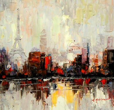 Tableau Contemporain - Les Lumières De Paris 50x60 cm Peinture à l'huile - A4528 | eBay