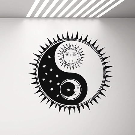 Relatividad Yin Y Yang Sala De Estar Interior Vinilo Removible Tatuajes De Pared Adhesivo Tatuaje Fuerte Sol Y Luna 64x63cm Amazon Es Hogar