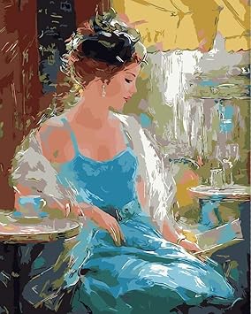 Peinture par numéros sur toile Peinture à l'huile de bricolage, peinture par numéro Kits Superbe Fiddlers Filles Motif 40,6 x 50,8 cm (cadre en bois) with Wooden Frames without Installed Elegant Girl