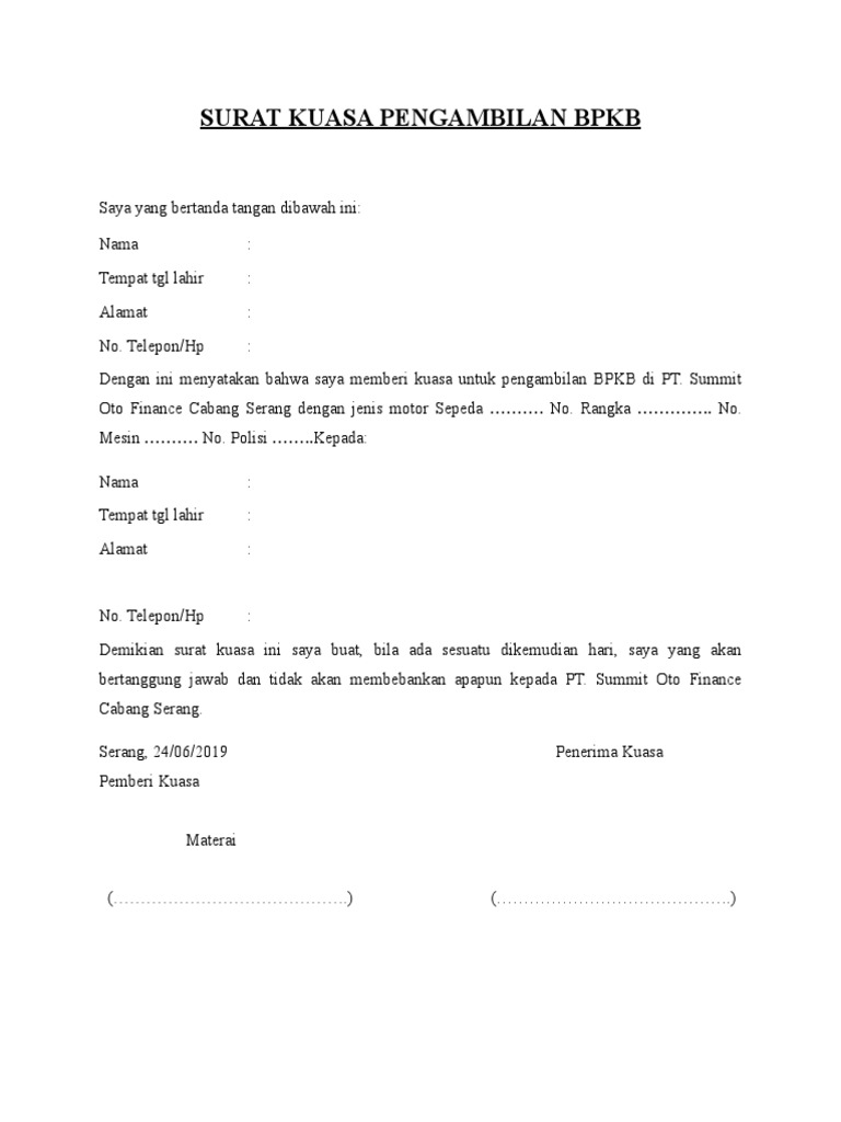 [View 35+] Summit Oto Contoh Surat Kuasa Pengambilan Bpkb Di Oto Finance