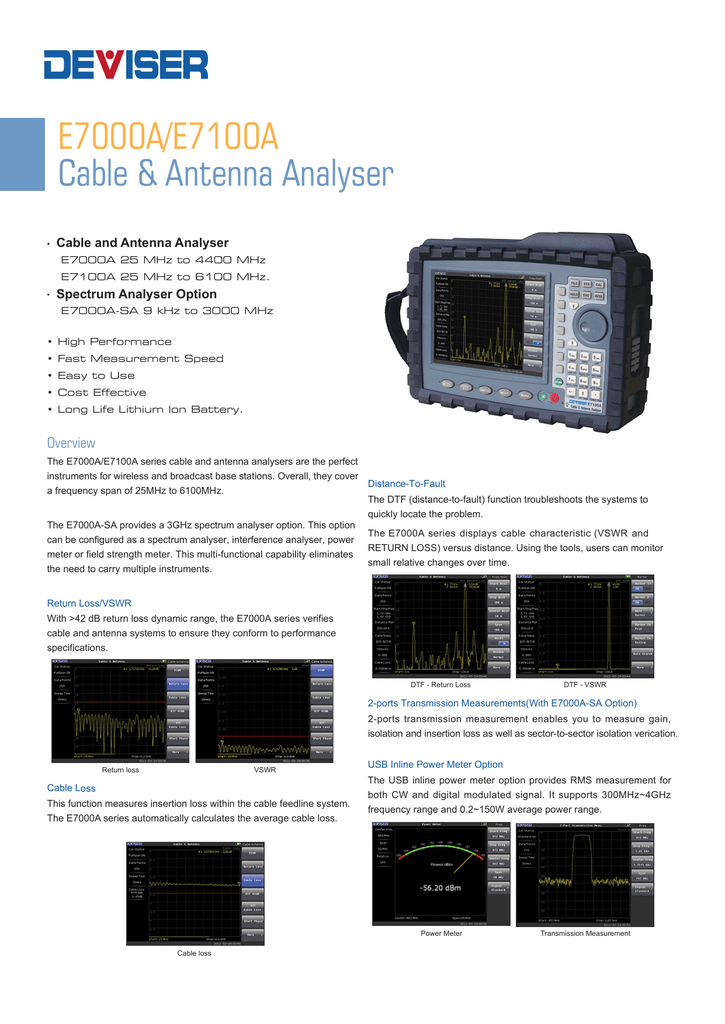 Cable&Antenna Analyzer E7000A VSWR/DTF/Return Loss.._ELECTEK |