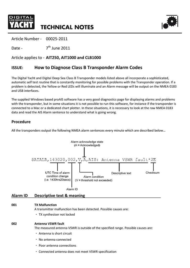 tech 00025-2011 diagnosing ais transponder alarms | Manualzz